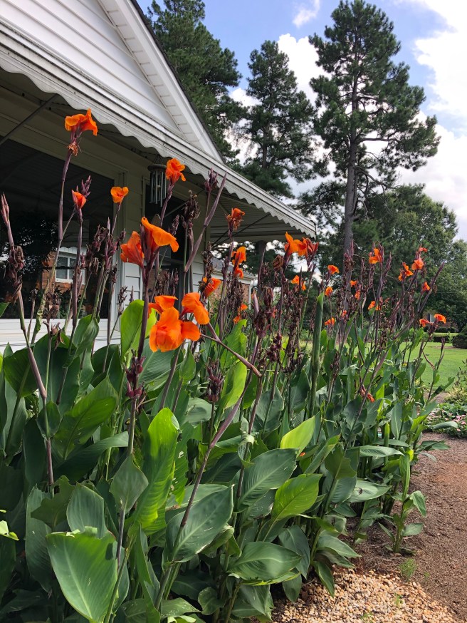 Several years after my grandmother’s death, my aunt and uncle moved into the old homeplace. On one of my visits to the farm, my aunt offered me a few of the canna bulbs to take home and plant in my yard. I was thrilled at the prospect, and upon arriving home, planted the bulbs in the bed that skirts the bank of windows on my back sun porch.