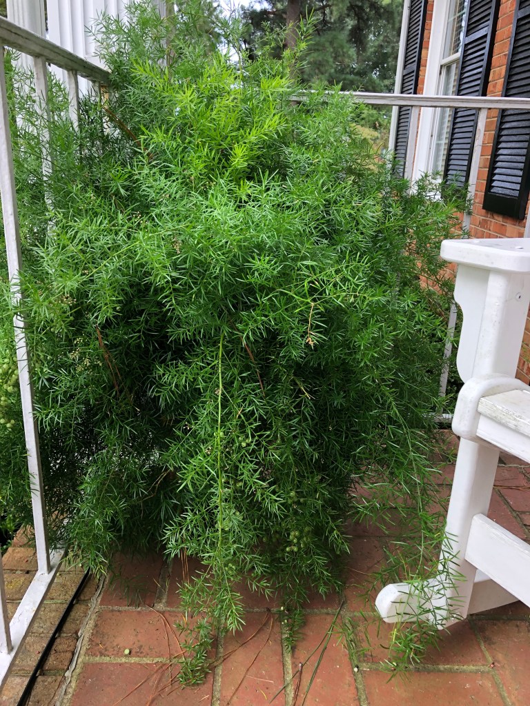 I am a big fan of asparagus ferns. I love their wispy fronds, and the whimsical way they flutter in the breeze. They are quite resilient, tolerating a mix of sun and shade, but I guess I didn’t realize just how resilient they really are. Until this spring, that is.