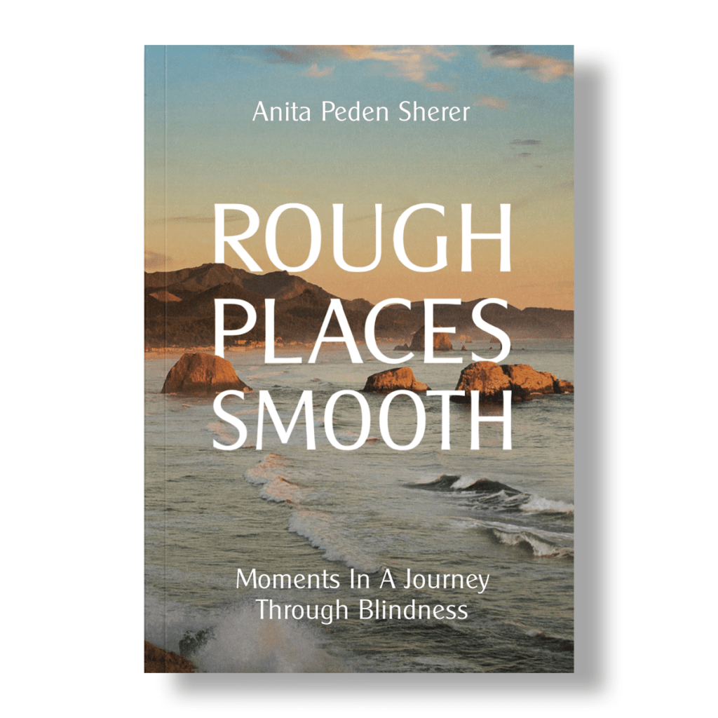 For real-life insights into the journey through progressive vision loss, check out my inspirational memoir, “Rough Places Smooth: Moments In A Journey Through Blindness” by Anita Peden Sherer. Now available on Amazon in softcover, Kindle ebook, Kindle Unlimited, and as an audiobook on Audible and Apple Books.